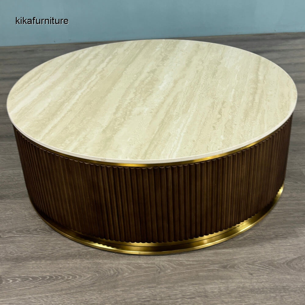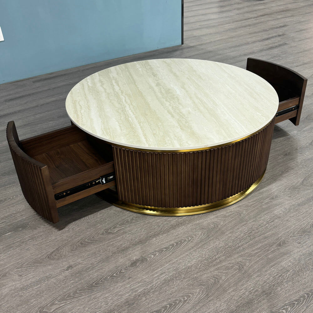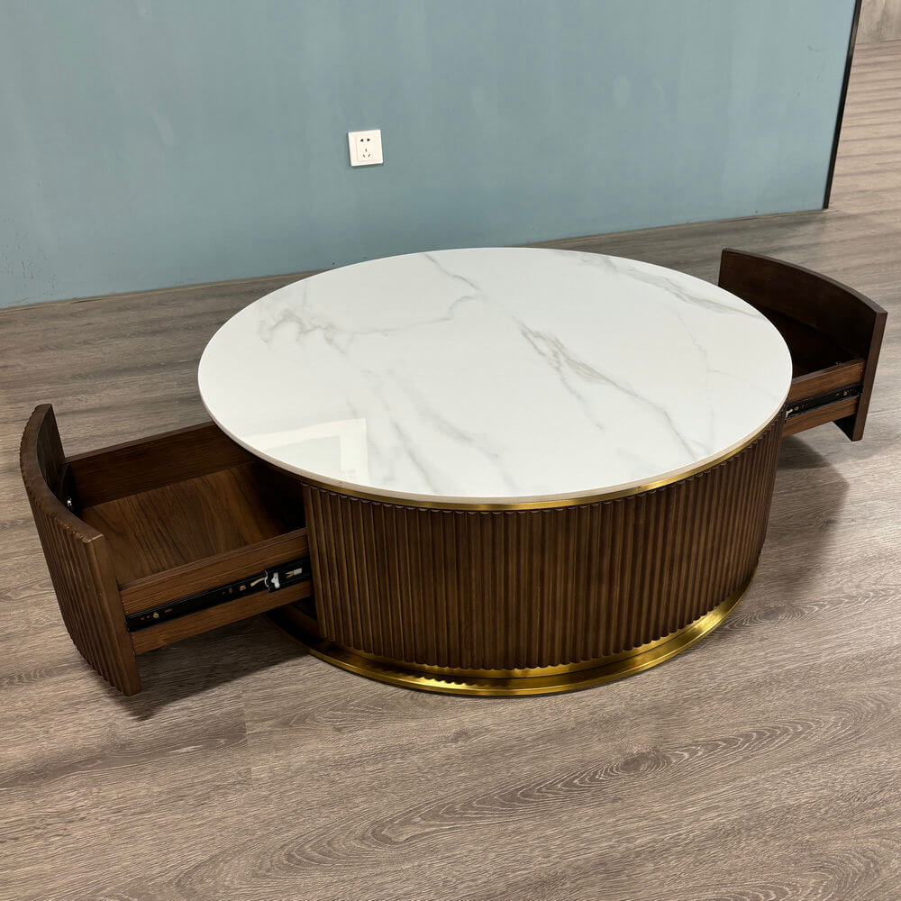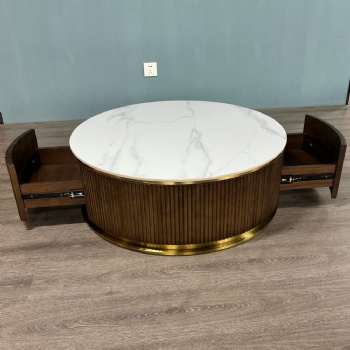 Our K50 modern sintered stone top round coffee table with 2 pcs drawer,
